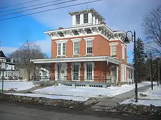 Adon Smith House is a historic home located at Hamilton in Madison County, New York. It was built about 1850 and is a 2+12-story brick dwelling with Italianate elements. It features a U-shaped porch with elaborate wrought iron columns and railings and has a glazed belvedere. It is now used as the village office building.[2]