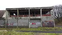 The exhibition ended in October 1938 and many of the temporary structures were dismantled and the site restored to parkland.[3] Although the Glasgow Herald campaigned for it to be retained on site Africa House was purchased by ICI Nobel and relocated to their explosives manufacturing site in Ardeer, North Ayrshire.[1][2] The company had their own temporary structure at the exhibition, the ICI Pavilion, designed by Basil Spence and made entirely from the company's products, but this was not retained.[2] Africa House is one of the few structures to survive the exhibition, the others being the Palace of Engineering (which was relocated to Prestwick Airport and later used as a factory by British Aerospace and currently Spirit AeroSystems) and the Palace of Art which was always intended as a permanent structure and remains on site in the park.[3][1] Africa House was used as a kitchen and canteen for the thousands of staff employed by ICI Nobel at Ardeer, and was extended in the 1960s.[2][1] The structure became a listed building on 31 January 1992 and is currently in Category B.[2]