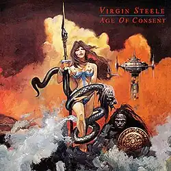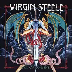 Age of Consent is the fourth full-length album by the American heavy metal band Virgin Steele. The album took eight months to complete, a change from Noble Savage which was recorded in only a few weeks, and was finally released in October 1988. It received scarce promotion and distribution by their small label, resulting in very low sales. The songs of this album follow in style and content the music of the previous album Noble Savage, adding a more polished sound and production.[5] At the time of release, the band faced legal and financial setbacks that brought to the unofficial disbandment of Virgin Steele.[6] Joe O'Reilly, although credited for playing bass on the album, was ill at the time of recording and was ghosted by DeFeis and Pursino.[6]
