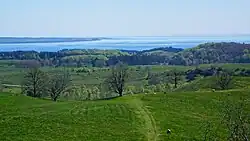 Agri Bavnehøj (or Agri Bavnehoej) is a Danish hill and vista point with a bronze age burial mound, located 137 meters above sea level. It is close to the village of Agri, in Mols Bjerge National Park on the southern part of the Djursland peninsula, 40 kilometres (25 mi) northeast of Denmark’s second largest city, Aarhus. The mound was built 1800 – 1000 years BC.[1] Agri Bavnehøj is the least known of four vista points and burial mounds on southern Djursland, despite being the highest (by a few meters). The others are Stabelhøje, Trehøje and Ellemandsbjerg.