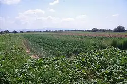 North Macedonia possesses 10,140 km² of agricultural land, which is almost 39% of its territory. Half of this land is devoted to crop growing, and the other half livestock farming. The country has 48,606.75 hectares of forests.[17] Macedonia distinguishes itself by the smallness of its agricultural properties: 80% of them are between 2.5 and 2.8 hectares, and are divided into small parcels. The former state-owned businesses, which are much bigger, are generally in financial difficulties due to incomplete privatisations.[2]