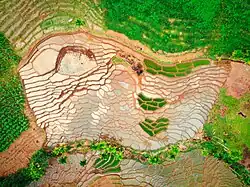 The primary form of agriculture in Sri Lanka is rice production. Rice is cultivated during Maha and Yala seasons.[1] Tea is cultivated in the central highlands and is a major source of foreign exchange. Vegetables, fruits and oilseed crops are also cultivated in the country. There are two Agriculture Parks abbreviated as A. Parks established by the Department of Agriculture. Out of the total population in Sri Lanka, 27.1% engages in agricultural activities.[2] Agriculture accounted for 7.4% of the GDP (gross domestic product) in 2020.[3]