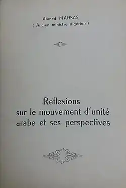 - ^ a b "Réflexions d'Ahmed Mahsas à propos du mouvement révolutionnaire arabe (1974) - L'Algérie dans la Gloire de l'Arabité civilisationnelle". algeriearabite.canalblog.com. 1 June 2020.