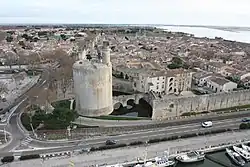 Aigues-Mortes (French pronunciation: [ɛɡmɔʁt]; Occitan: Aigas Mòrtas) is a commune in the Gard department in the Occitania region of southern France. The medieval city walls surrounding the city are well preserved. Situated on the junction of the Canal du Rhône à Sète and the Chenal Maritime to Le Grau-du-Roi, the town is a transit center for canal craft and Dutch barges.[3] [4]