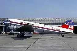 The Air Atlantique name was adopted in June 1977 when freight charter flights were launched with Douglas DC-3 aircraft. It was thought the name would both appeal to the French-speaking population of Jersey and appear near the top alphabetically in the Yellow Pages. Freight charter operations commenced on 19 July 1977 with the first flight transporting lobsters from Jersey to Morlaix.[2]