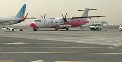 An Air Carnival ATR 72-500 at Dubai International Airport awaiting delivery