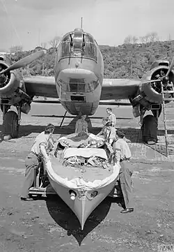 Airborne lifeboats were powered lifeboats that were made to be dropped by fixed-wing aircraft into water to aid in air-sea rescue operations. An airborne lifeboat was to be carried by a heavy bomber specially modified to handle the external load of the lifeboat. The airborne lifeboat was intended to be dropped by parachute to land within reach of the survivors of an accident on the ocean, specifically airmen survivors of an emergency water landing. Airborne lifeboats were used during World War II by the United Kingdom and on Dumbo rescue missions by the United States from 1943 until the mid-1950s.[1]