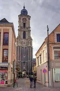 The church is one of the most important monuments, with its imposing style, in Artois. It has all the characteristics of a cathedral, but in the absence of a bishop, it cannot claim that title. Witness to the splendour of the city, the collegiate church of Saint-Pierre is of Romanesque style. Built between 1492 and the eighteenth century, one can see both on the inside and the outside of the building carving that details the 400 years progress. It has been the parish church since 1802. The tower, completed in 1624, collapsed soon after. Ten years later, the damage was repaired. The top of the tower was again restored between May 2005 and April 2007. The ground floor, the nave, choir and high arches are essentially Gothic.