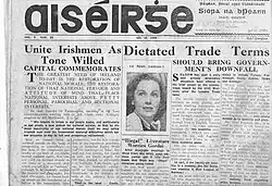 The newspaper was founded by Gearóid Ó Cuinneagáin as the party organ of Ailtirí na hAiséirghe. This was a minor radical nationalist and fascist political party, founded in 1942. It sought to form a totalitarian Irish Christian corporatist state.[1][2] The party obtained no seats in the 1943 and 1944 general elections and gradually weakened after a split in 1945,despite winning 9 seats out of 31 contested in the elections of that year.It finished in 1958, but the newspaper continued to be published.[3]