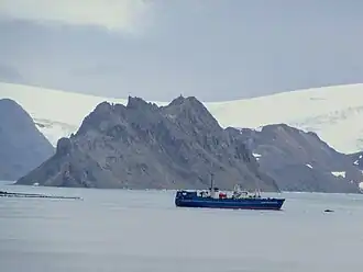 ![]() RV Akademik Aleksandr Karpinsky in 2019 at Admiralty Bay, King George Island, Antarctica.