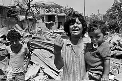 Following an assassination attempt on Israeli ambassador Shlomo Argov in London the IDF started an invasion of Lebanon on 6 June 1982, which heavily afflicted Tyre once again: Shelling by Israeli artillery[37] and air raids killed some 80 people on the first day across the city.[38] The Palestinian camps were bearing the brunt of the assault, as many guerillas fought till the end.[18] Though El Buss was less affected than other camps, a contemporary United Nations report found that half of the houses in the camp were either badly damaged or destroyed during the invasion.[39][40] The Advisory Committee on Human Rights of the American Friends Service Committee termed the destruction of homes in El-Buss "systematic".[41] As a consequence, the drive to emigrate from El-Buss increased further: