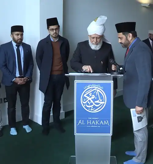 Today, there is also an announcement and a source of good news in that the Al Hakam newspaper that was once published in Qadian will now be published from here. In 1934 it began printing again but stopped soon after. Today, on the Promised Messiah Day it will be launched from here [UK] in the English language. This newspaper was the first newspaper published in the time of the Promised Messiah (as). It will be printed in a small quantity, however, immediately after this Friday Sermon it will be available on the internet on www.alhakam.org Similarly, there will be an app called “Al Hakam” for mobile phones and tablets from which one will be able to easily download the newspaper and read it. The app for the familiar mobile devices such as Apple and Android and will be available for download after this sermon. The first edition is a special feature for the Promised Messiah Day and in future, a new edition will be uploaded every Friday. Also there will be a few printed copies available. Nevertheless, people will be able to derive benefit from this. After this launch, may God Almighty enable it to continue incessantly. Since this newspaper will be in English, therefore the English speaking members should derive maximum benefit from this.[11]