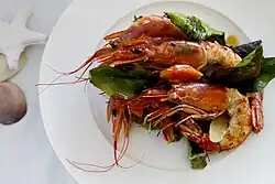 Albanians living in the coastal cities, especially in Durrës, Sarandë and Vlorë are passionate about their seafood specialties. Popular seafood dishes include trout, calamari, octopus, cuttlefish, red mullet, sea bass, gilt-head bream and other. Baked whiting, carp, mullet or eel with olive oil and garlic are also widely consumed in the country.