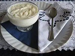 Tavë kosi is a national dish in Albania that is beloved throughout the country.[36] The speciality is a simple dish of baked lamb and rice, served with a flavored yogurt sauce. Recently, it has become very popular among the Greeks and Turks associated to the large Albanian diaspora in Greece and Turkey.[37]