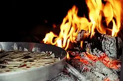 Gjel deti me përshesh (turkey with përshesh) is the usual New Year's dish in many Albanian families and also consumed in other kind of celebrations. Turkey is first boiled and then roasted and served with përshesh, which is prepared by baking pieces of kulaç (a kind of bread) with turkey broth, along with mint and other spices.[34]