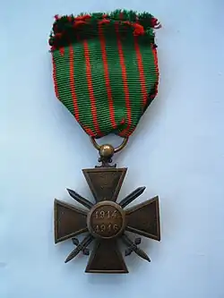 | The Croix de Guerre | Bartholomé designed the Croix de guerre 1914–1918 (France). |