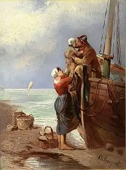 Soon, however, he began participating in local exhibitions and, in 1853, was awarded the "Grote Koninklijke Medaille" for painting.[1] In 1858, his work "Rural Simplicity" won an award from Pictura, the local art society, and he was commissioned to do a series of watercolors depicting the interior and exterior of the Groene Weeshuis, a 17th-century orphanage that was due to be demolished. Three years later, he provided a series of cityscape drawings for the lithographer, Carel Christiaan Antony Last, who published them as the Album der stad Groningen.