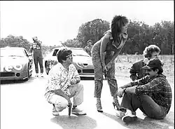 De Rosa crouched; Moria Casán standing