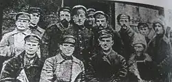 The Internment Camp No. 6 in Aleksandrów Kujawski housed soldiers from the 6th Sich Rifle Infantry Division (the largest group), the 4th Kyiv Riflemen Division, and the 3rd Iron Riflemen Division.[7] The number of internees fluctuated, remaining between 3,200 and 3,500 from December 1920 to March 1921, with the peak number of 3,565 recorded on 21 December 1920. This number gradually decreased over time. By 12 October 1921, there were 1,861 inmates in the camp.[9] The largest group consistently comprised rank-and-file soldiers, numbering over 2,000 until May 1921 and dropping to 1,296 by the camp's closure. The number of officers exceeded 800 by March 1921 but eventually fell to 475. The camp also housed several children and a group of women, peaking at 112 in March 1921.[9] The reduction in the number of internees was due to the Polish authorities' efforts to close the camps, with groups of soldiers being sent to work outside the camp (the first group left in August 1921).[10]