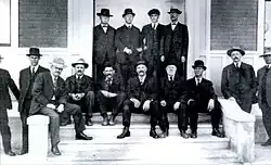 During the 1888 tour, after the Brisbane match, Laing's Hawick teammate Bob Burnet made his made up to stay in Australia. Alex along with his other Hawick teammate Willie Burnet, returned to face questioning about their amateur status in Glasgow as soon as they returned. Along with the rest of the tour party, they were found not to have contravened the rules and in late November 1888 they returned to Hawick, apparently to a hero’s welcome. Laing emigrated in November 1889[5] to Buffalo, Wyoming, where he and Willie Burnet set up a successful sheep farming ranch.[6] In Wyoming he married Flora, herself from Wyoming but whose father was from Canada and whose mother was from North Carolina. They had at least two daughters in Wyoming, Elizabeth and Margory.[7] Laing was naturalized as a citizen of USA in November 1898 before the District Court of Sheridan County, Wyoming. By 1920 he had lived uninterruptedly in buffalo for 31 years where he had established himself as a stock grower, specializing in sheep, although in 1920 he did apply to import into the USA a shipment of pure bred cattle from Scotland.[5]