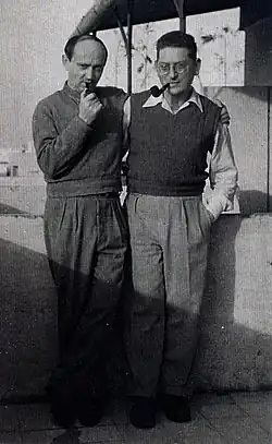 ![]() Composer Uriah Boskovich (left) and Mordecai Seter in the 1940s | |