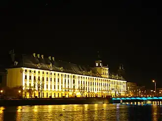 She worked at the University of Breslau as an assistant Professor, she was giving historical lectures in several German archives and devoted herself to genealogical researches. In 1924, her mother Cornelia died at her Castle Badewitz. Alexandra, with no desire to live in a castle, sold the property in 1925. Her two sisters, Freda and Edith, moved into Alexandra's apartment in Breslau. During the following years, Alexandra dedicated herself to writing and publishing her historic genealogical works, she had many clients, but the family fortune was slipping through her fingers very fast as she – an unmarried feministic aristocrat – had to take care of her two disabled sisters and wanted to preserve a lifestyle the three of them were used to have.[4] Before World War II, Alexandra was the most prestigious and respected genealogist in Breslau, but the reputation she gained through her competence and work, did not help her a lot with her financial troubles. She and her sisters struggled through the rough time of the War in the “fortress” Breslau and in January 1945 when the civilian population of the city was told to leave, the sisters Dyhrn decided to stay and therefore risked their lives. In April 1945, the city was bombed by the Soviet army and was mainly destroyed. Alexandra and her sisters died on 9 April 1945 when a bomb fell on their apartment at the central Kaiser-Wilhelm-Straße, only a few weeks before the War ended.