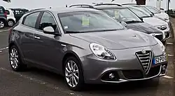 The Alfa Romeo Giulietta[7] (Type 940) is a hatchback manufactured and marketed by Alfa Romeo, as a 5-door small family car with sporting ambitions. Production started near the end of 2009 and the model was introduced at the March 2010 Geneva Motor Show.[8] The Giulietta placed second in the 2011 European Car of the Year awards. In 2020, Alfa Romeo announced that they were going to axe the Giulietta and production ended on 22 December 2020 spanning 10 years of sales from a period of 2010 to 2020.[9] In total 469,067 examples were produced until 2020.[1]
