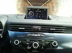 At the 2013 Frankfurt International Motor Show Alfa Romeo presented an updated Giulietta.[15] Trim changes included a new Uconnect infotainment system with 5" or 6.5" Radionav touchscreen, a new front grille, a chrome-plated frame for the fog lights, a new and more supportive seat design, new wheel designs (16, 17 and 18-inch), as well as new exterior colours: Moonlight Pearl, Anodizzato Blue and Bronze. A new diesel engine variant also arrived, the 2.0-litre JTDM 2, developing 150 PS (110 kW; 148 hp) and 380 N⋅m (280 lb⋅ft). In the 2014 range, all engines complied with Euro 5+ (Euro 6-ready) emission standards.