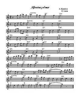 "Alfonsina y el mar" (lit. 'Alfonsina and the sea') is a zamba composed by Argentine pianist Ariel Ramírez and written by Argentine writer Félix Luna. It was first released as part of Mercedes Sosa's 1969 album Mujeres argentinas. The song is a tribute to Argentine poet Alfonsina Storni, who committed suicide in 1938 by jumping into the sea from a jetty.[1][2] The song is a classic and has been interpreted by many artists of different nationalities.[3][4]