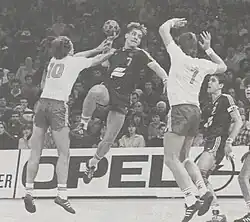 Alfreð Gíslason (born 7 September 1959)[1] is an Icelandic handball coach and former player who is currently the head coach of the German men's national team. He won titles in Iceland, Germany and Spain as a player before starting his coaching career in 1991 with Icelandic team KA as a player-coach. He later coached German club SC Magdeburg, where he won the Bundesliga and the EHF Champions League, the Icelandic men's national team and German club THW Kiel, where he won six Bundesliga, six DHB-Pokal and two EHF Champions League titles.[2][3] Alfreð was the Icelandic Sportsperson of the Year in 1989 and inducted into the National Olympic and Sports Association of Iceland Hall of Fame in 2019.[4][2]