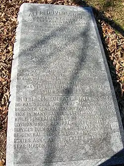 Alfred Iverson Jr. (February 14, 1829 – March 31, 1911) was a lawyer, an officer in the Mexican–American War, a U.S. Army cavalry officer, and a Confederate general in the American Civil War. He served in the 1862–63 campaigns of the Army of Northern Virginia as a regimental and later brigade commander. His career was fatally damaged by a disastrous infantry assault at the first day of the Battle of Gettysburg. General Robert E. Lee removed Iverson from his army and sent him to cavalry duty in Georgia. During the Atlanta Campaign, he achieved a notable success in a cavalry action near Macon, Georgia, capturing Union Army Maj. Gen. George Stoneman and hundreds of his men.