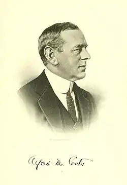 A member of the Republican Party, Alfred M. Coats supported the re-election campaign of George Peabody Wetmore as U.S. Senator in 1907, opposing the bid of Industrial Trust Company founder Samuel P. Colt.[40] The Coats' winter home at 13 Brown Street, leased to R. Livingston Beeckman, became the R.I. Governor's Mansion from 1915 to 1921.[41] In the United Kingdom, his brother Sir Stuart Auchincloss Coats was a Conservative Member of Parliament from 1916 to 1922.