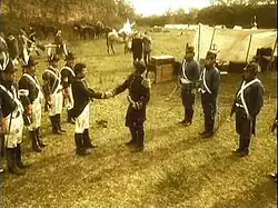 Actors Pablo Cedrón (as José de San Martín) and Marcelo Savignone (as Manuel Belgrano) represent the Posta de Yatasto, while Felipe Pigna and Mario Pergolini watch it from the background and act as if they were among it.