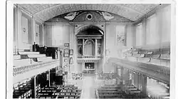 Inside the church, the arched ceiling of the main sanctuary was unsupported by internal pillars and spanned the whole length and width of the church, measuring 90 feet (27 m) by 60 feet (18 m).[2][19] In his book A Walk Through Southampton, Sir Henry Englefield lamented the positioning of the pews, pulpit and reading desk:[22]