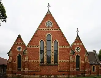 The first church service was held in Petersham on 15 April 1860 in a tiny school room. Shortly thereafter, the congregation resolved to build a school and hall.[1][2] The old school room no longer exists.