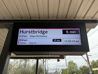 A PID on Platform 2 displaying a Hurstbridge-bound service, August 2024