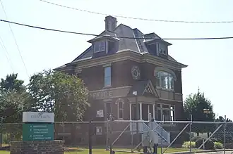 Altamahaw Mill Office is a historic office building located at Altamahaw, Alamance County, North Carolina. It was built in 1890, and is an irregular shaped, 2 1/2-story, Queen Anne style brick office building. It features an intersecting bell-cast roof, a decorative chimney, and a wide band of brown and cream-colored bricks.[2]