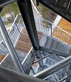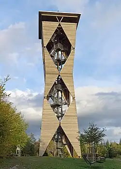 At the summit is the Altenberg Tower, a 38.3-metre-high[1] observation tower. The tower was opened on 7 October 2007[2] and measures 36 metres from the ground to the observation platform. As a result, the fully covered viewing point is at a height of about 600 m.
