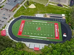AHS athletic teams are known as the Railroaders and compete in the Cloverbelt Conference.[5] In the fall of 2019, a new sports complex with artificial turf opened, housing contests for the football, soccer, and track and field.[6] The football field is named after former Green Bay Packers player Fuzzy Thurston, a graduate of the school.[7]