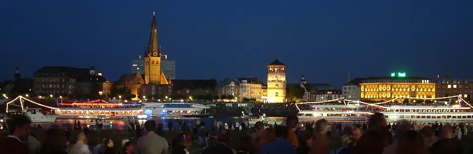 The Old Town has an area of 0.48 square kilometer (which is less than a quarter of a percent of the whole city)[1] and has 2,429 inhabitants (2020), less than half a percent of the population of Düsseldorf. The density of population is thus 5,398 inhabitants/km2.[2]