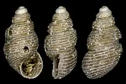 | Shell of † Alvania gourbesvillensis (holotype at MNHN, Paris) | |