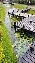 In addition to the park's 26 gardens, other points of interest include: Zen Patio, the Tori, the Meda, the Chinese Dragon, the Moon Gate, the Mandala, the Pottery, the Belvedere, the Wood, the Vegetable Garden, the Large Vases, the Tent, the Picture Frame and the Tree House. All of these spaces have varied architectural references.[11]