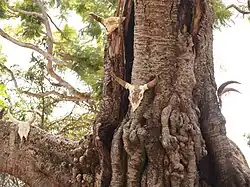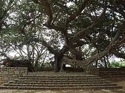 Ranavalona I planted a pair of royal fig trees at the far end of the Bevato compound and stood between them when addressing the public. These were later complemented by additional fig trees planted all around the courtyard by Ranavalona II[12] and jacarandas planted by the French during the colonial period.[37] The figs that shade the esplanade are believed to be imbued with hasina enhanced by the bones and skulls of sacrificed zebu and special marking stones that pilgrims from across Madagascar, Mauritius, Reunion and Comoros have come to place around them. Pilgrims gather in this courtyard to celebrate the Fandroana ceremony, during which time the sovereign historically engaged in a ritual bath to wash away the sins of the nation and restore order and harmony to society. Today, pilgrims celebrate by offering sacrifices or prayers to honor, appease or commune with their ancestors.[38]