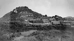 The villages surrounding the royal city date back to at least the 16th century, when the valleys around Ambohimanga hill were first transformed into rice paddies.[11] Following the establishment of a royal city on the hilltop, successive rulers put in place regulations to govern the development of these villages and manage the subjects inhabiting them. Under Andrianampoinimerina, quotas established a set number of houses for members of influential clans in designated neighborhoods around the hill. This king also established rules to improve sanitation, including standards of cleanliness in domestic courtyards and the quarantine of people suffering from certain illnesses. Ranavalona I specified the physical characteristics of newly constructed houses, including their size and decorative features.[12] In 1862 Radama II gave permission to a group of Christians to negotiate with Tsimahafotsy elders to construct the village's first church, but the Tsimahafotsy initially rejected the request. The king's successor, Queen Rasoherina, later requested the Christians not to gather indoors for services at Ambohimanga in honor of the sanctity of the ancestors.[31] The court was Christianized by Ranavalona II in 1869,[32] and a small chapel was built outside the city's eastern gate,[33] but a permanent church at Ambohimanga was not built until 1883.[31] Following a fire that occurred in 1870 during a visit of Ranavalona II to Ambohimanga, the queen decreed that houses in the village could be constructed in brick, a material previously reserved for tomb and wall construction.[12] A series of ancestral fady (taboos) decreed by Andrianampoinimerina continue to apply in the village,[2] and include prohibitions against corn, pumpkins, pigs, onions, hedgehogs and snails; the use of reeds for cooking; and the cutting or collecting of wood from the sacred forests on the hill.[12]