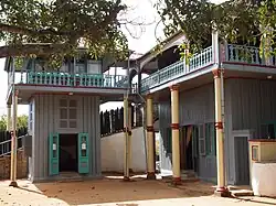 Two ornate palace buildings were built of rosewood in this compound in 1871 on the former site of the Manjakamiadana royal idol residence. The first and larger of the two, Fandriampahalemana,[10] features a room for receiving visitors and a large salon on the ground floor, and the bedrooms of Queen Ranavalona II and her serving lady on the second floor.[14] The original European furnishings have been preserved, and the many gifts given by foreign dignitaries to the queen are on display here.[41] The queen's bedroom is considered a sacred place and many visitors come on pilgrimage to pray to her spirit.[10]