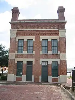 The Amboy Illinois Central Depot was designed by railroad staff architect James Nocquet in the Italianate style of architecture.[6][7] Before Nocquet was employed by Illinois Central he worked in a Chicago architectural firm, Meriam and Nocquet. In 1871 he took his position with the railroad and remained in their employ through the 1870s, including during the time he designed the Amboy depot.[6] The building was designed to be a spacious and modern division headquarters while doubling as a depot for the citizens of Amboy; the southeastern half of the first floor was designed for such use. The depot section consists of waiting rooms and ticketing counters typical of their era while the headquarters portion of the building is well illuminated through ample fenestration.[3]