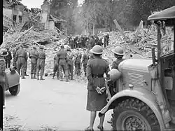 An AAGB Austin K2/Y ambulance attending the aftermath of a V-1 attack in Upper Norwood, London, 1944