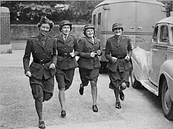 The ambulance staff were British women aged between 18 and 45 and numbered around 400,[2] some of whom were seconded from the Mechanised Transport Corps (for Women) and the Women's Transport Services (FANY).[4] Members of the AAGB wore the tunic and skirt uniform as worn by those in the FANY but with crossed British and American flags on the sleeve. All training was undertaken in Leeds.