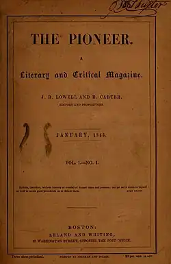 The first publication of "The Tell-Tale Heart" by Edgar Allan Poe in The Pioneer edited by James Russell Lowell, 1843.