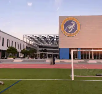 American School Dhahran building as seen from the soccer field